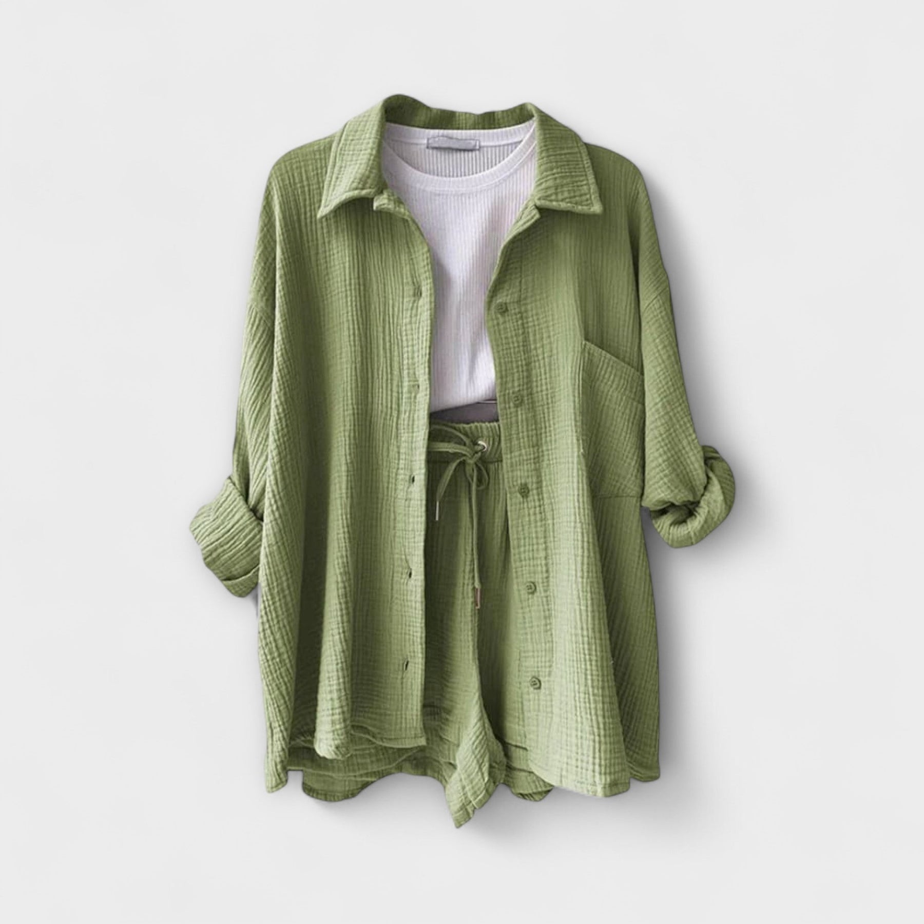 L’ensemble Victoria™ | Confort est la combinaison parfaite de confort et de style pour votre garde-robe. Idéal pour les journées chaudes, cet ensemble est confectionné dans des tissus respirants et présente un design élégant et polyvalent. Que vous vous détendiez au bord de la piscine ou que vous partiez pour une sortie décontractée, cet ensemble offre une coupe flatteuse qui vous garde au frais et confiante toute la journée.