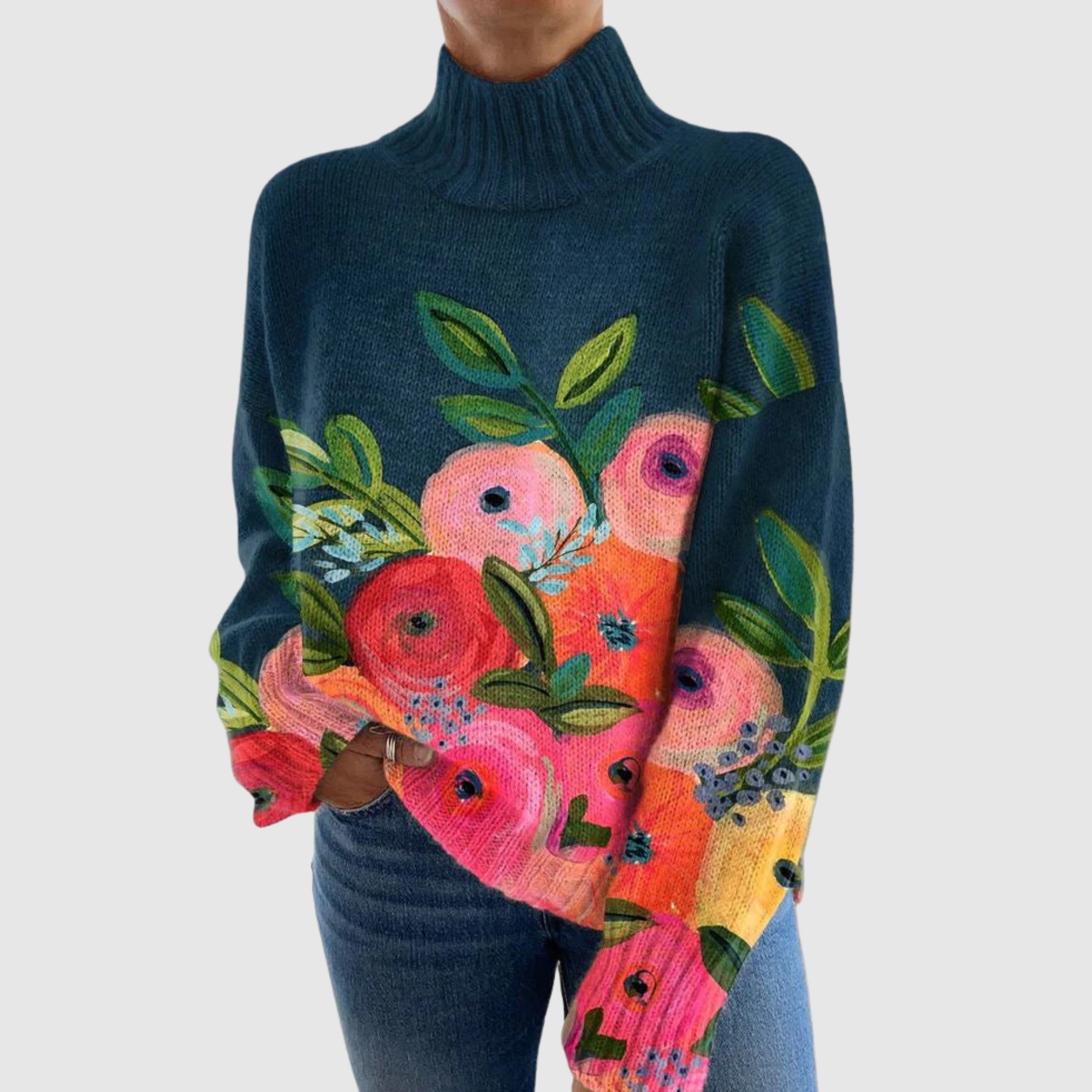 Élégance Confortable en Pleine Floraison – Le Pull Col Roulé Tessa