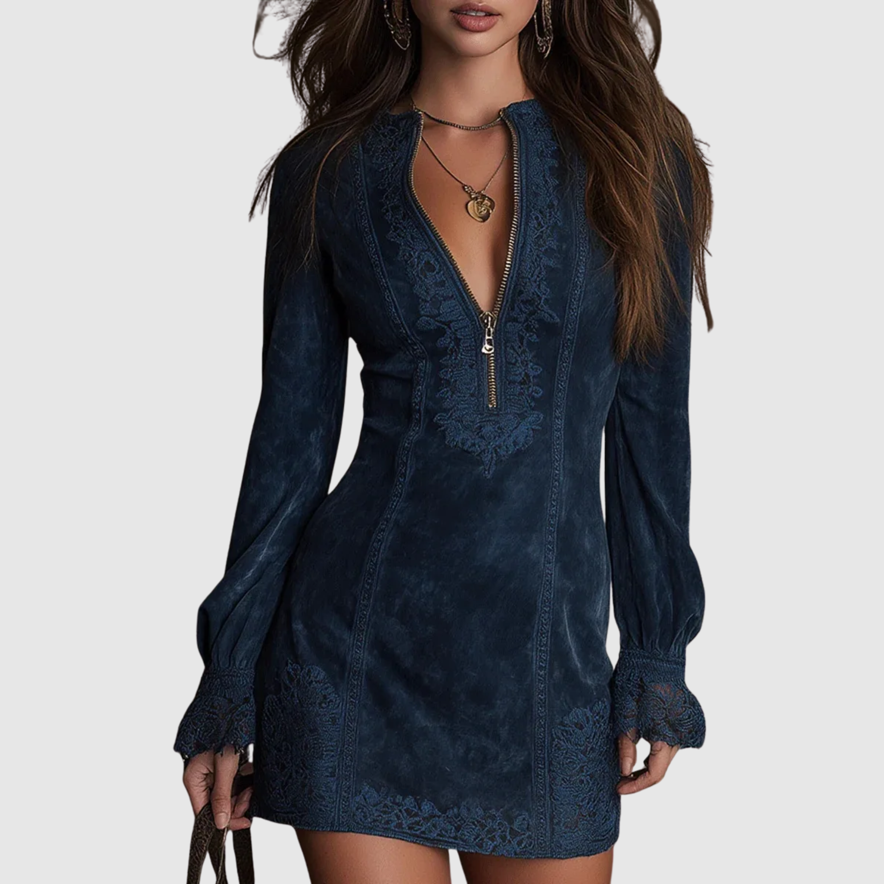 Fermeture éclair sur le devant – Ajoute une touche audacieuse à une silhouette gracieuse.