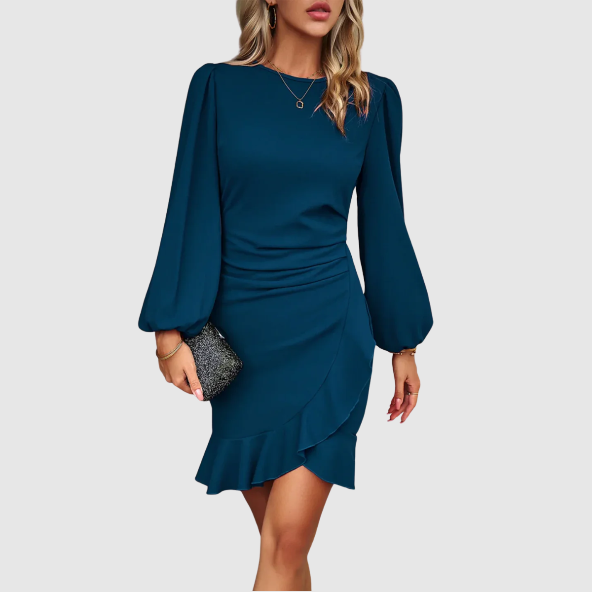 Cette mini-robe allie une coupe ajustée fluide à des manches volumineuses élégantes et un ourlet à volants doux. Conçue pour un style raffiné au quotidien, elle offre une silhouette flatteuse qui convient parfaitement aux réunions, aux dîners ou aux moments décontractés chics.