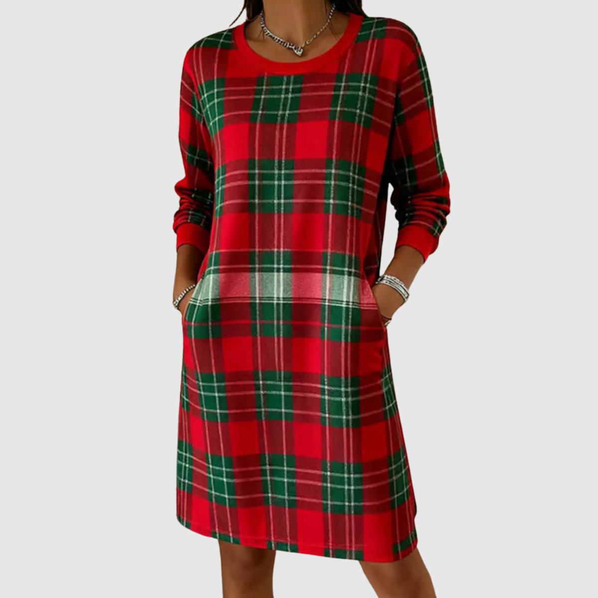 ✅ Motif à carreaux sur l'ensemble – Offre une disposition visuelle structurée sur l'ensemble de la robe.